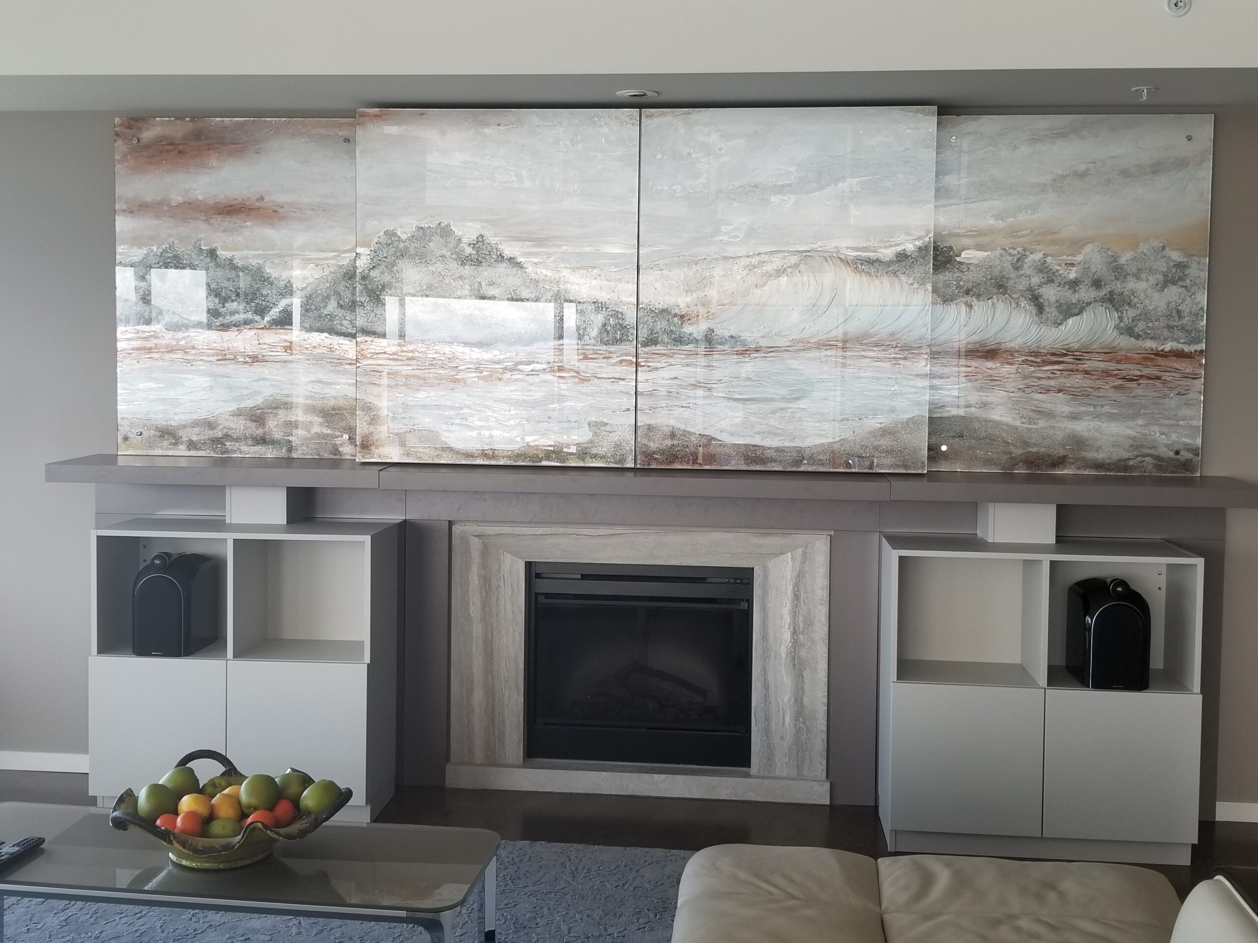 3. TV cabinet above fireplace after completion.
